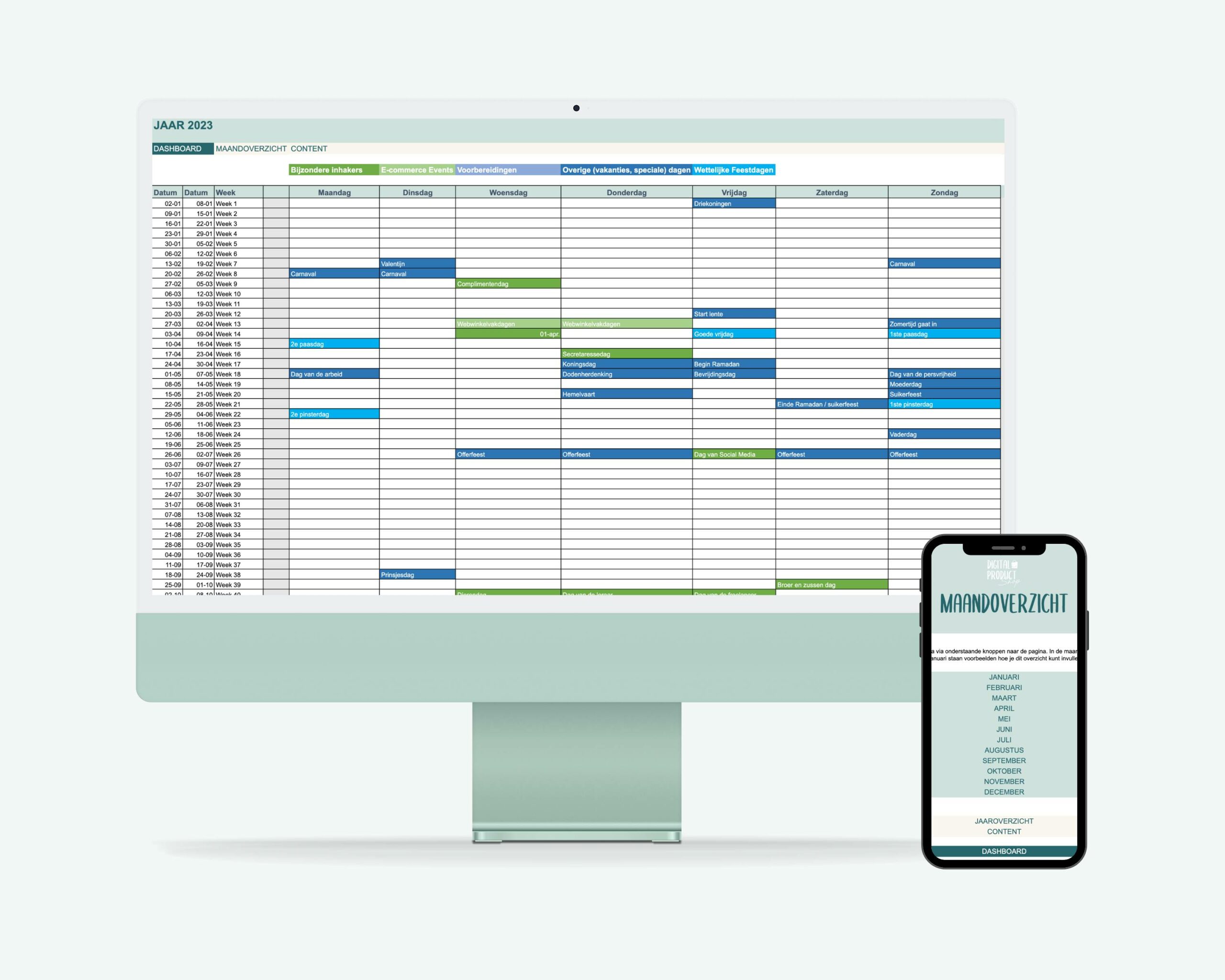 Plan je content in deze uitgebreide contentplanner, inclusief contentideeën en inhaakdagen.